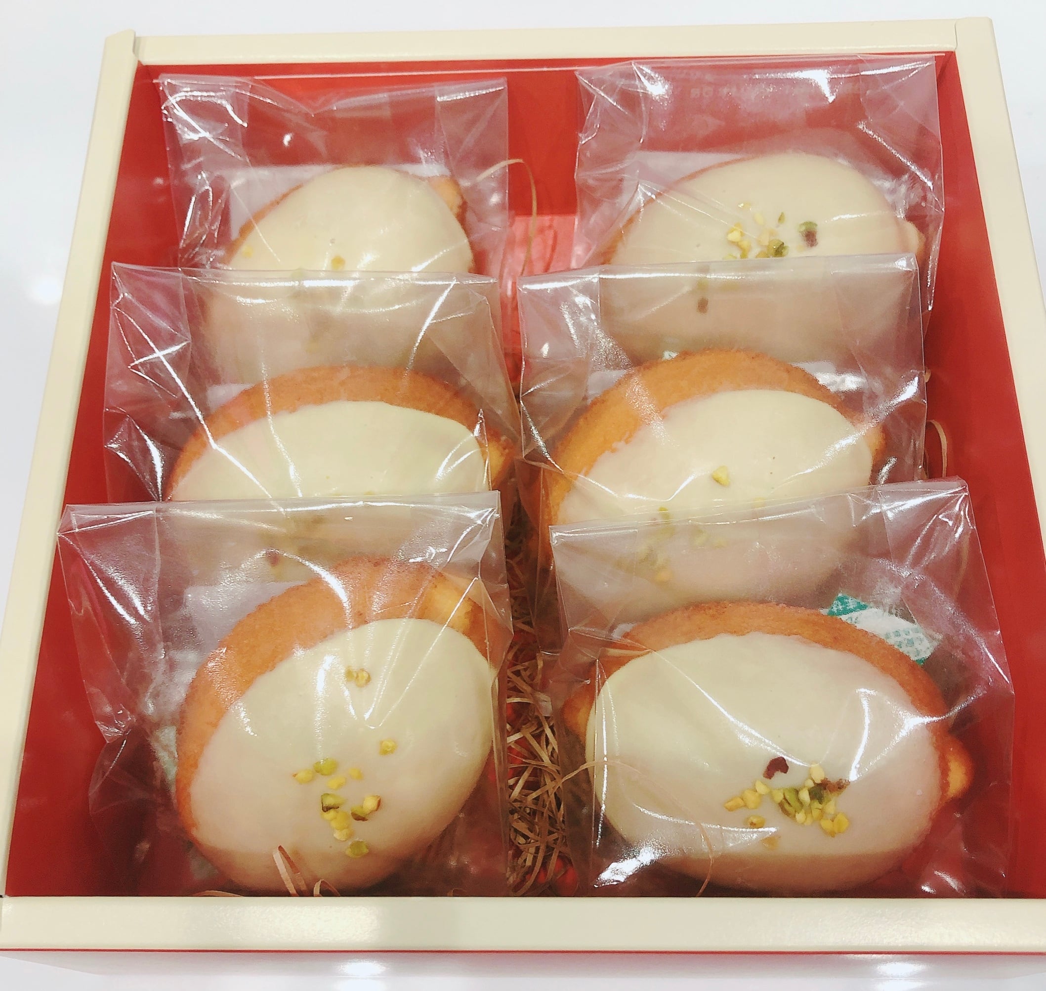 【原材料】卵、砂糖、小麦粉、バター、生クリーム、はちみつ、アーモンド、レモン 、牛乳、レモンピール、ベーキングパウダー、バニラ、レモンチョコ、転化糖